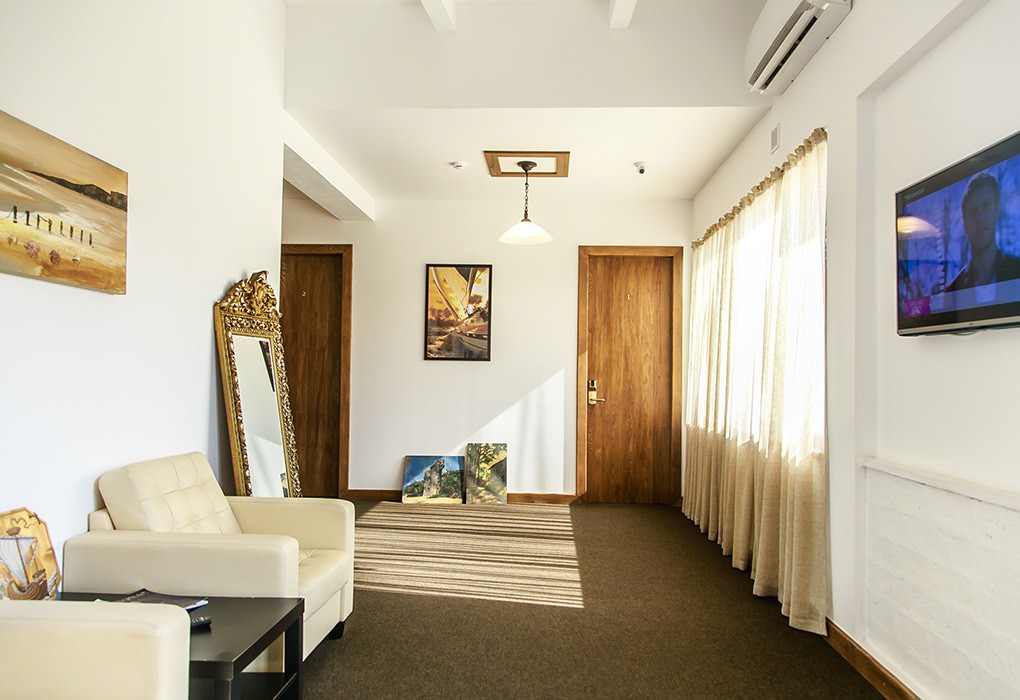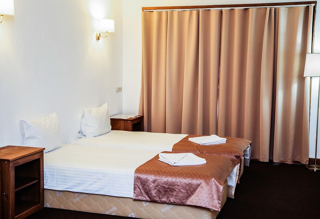 Площадь номера - 35 кв.м. 1 комната. 2 осн. места. В номере: балкон; сплит-система; спутниковое телевидение; душ; туалет; фен; 1-спальные/ 2-спальная кровать; чайник; сушилка для белья. 1 доп. место: Еврораскладушка - может быть установлена без ограничений по возрасту.